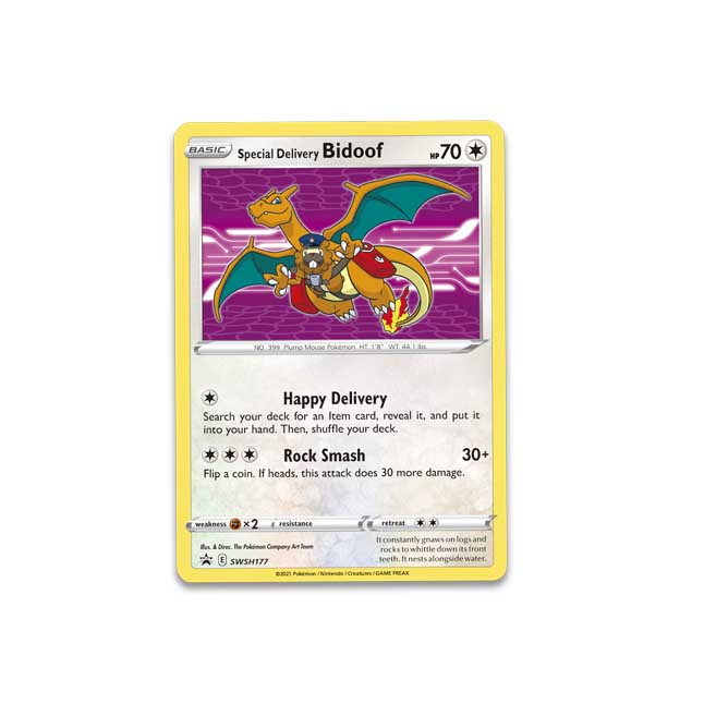 Special delivery bidoof & charizard black star promo!! Note that the code will expire on december 31, 2021, at 11:59 p.m. If heads, this attack does 30 more damage. Fun facts about some of my favorite pokémon cards! A special delivery bidoof card has been reserved for each code distributed, so you do not need to redeem the code immediately. Special delivery bidoof promo card swsh177 freshly open and mint. Fans will have until december 31st to redeem their code if they received one. Pokémon tcg earlier this week, the pokémon center reached out with a promotional code to certain customers. Swsh black star promos swsh177 this article is part of project tcg, a bulbapedia project that aims to report on every aspect of the pokémon trading card game.